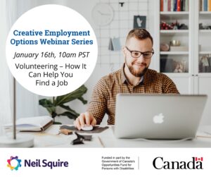 In this webinar, you will learn what volunteering is and why it is an important part of job searching. Topic: Volunteering – How It Can Help You Find a Job Date: January 16th, 2024 Time: 10:00 am PT Presented By: Western Region Neil Squire Staff Register Here About Our Creative Employment Options Webinar Series Please join our national Creative Employment Options team for a webinar series on a variety of topics designed to support: Job Seekers with disabilities, injuries, or illnesses People who face barriers and…